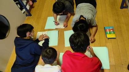 今日の振り返りをしています。この振り返りは、きっと明日の活動にも生かされることでしょう。