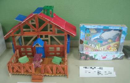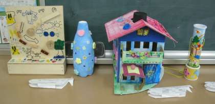 夏休み中に子どもたちが制作した工作の作品、各教室に展示されているすべての作品を紹介することができないのは残念ですが、どれも、子どもたちの頑張りが感じられる作品ばかりでした。子どもたちの頑張りに「拍手」です。