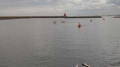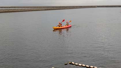 無事帰ってきました。2人の息が揃ってとてもはやく漕いでいるペアや悪戦苦闘しているペア。ずぶぬれになっている子もいましたが、みんな笑顔でした。