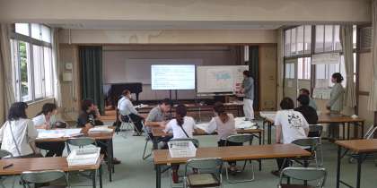 授業研究の後、より良い授業づくりに向け意見を出しあったり、講師の先生からのお話をお聞きしたりしました。
