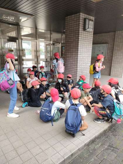 4年生、全員揃いました。柴島浄水場、今から出発です。