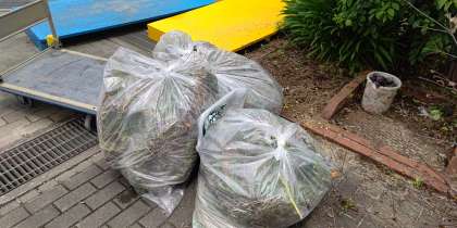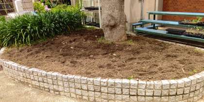 体育館前の木が枯れていたので、木を切りました。根元が腐っていました。また、春の花壇をにぎわせていた草花も盛りを過ぎてしまったので、次のものに植え替えられます。どんな花が植えられるのか楽しみです。