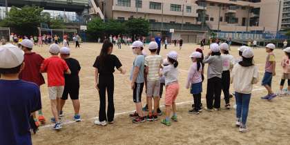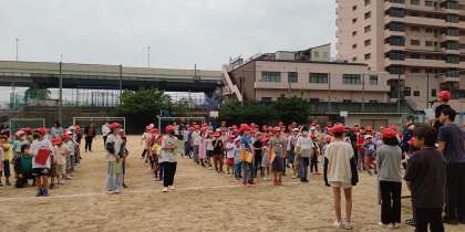 今年度初めての児童集会です。ふえおにです。広い運動場をいっぱいに使って楽しみました。