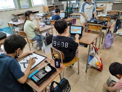筆の使い方や墨汁の量の調整は難しいですが、子どもたちは一生懸命書きました。