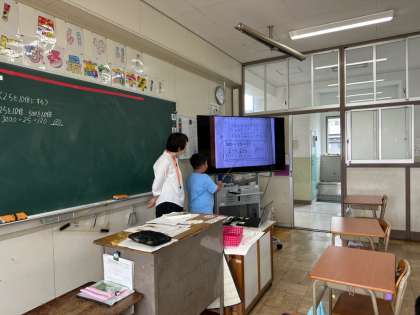 算数科の授業研究を行いました。少人数学習で、小数の割り算の仕方について考えました。見通しをもって問題解決学習に取り組んでいました。