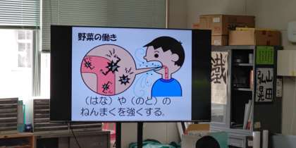栄養教育です。野菜のはたらきについて、学習しました。