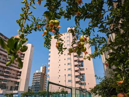 校庭のザクロや柿、夏みかんも小さな実をつけています。