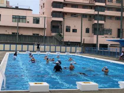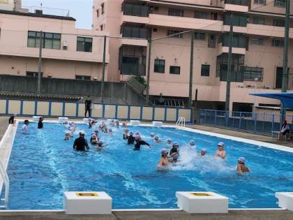 ジャンプしたり、水を掛け合ったり、今年初めてのプールを満喫していました。