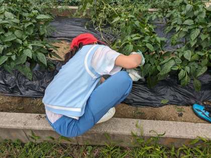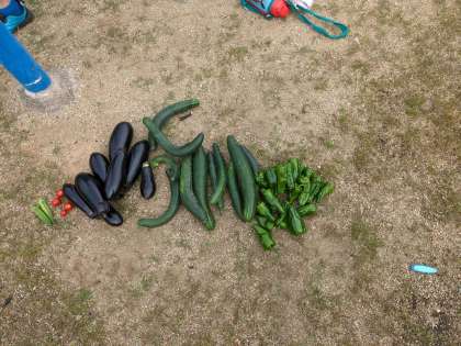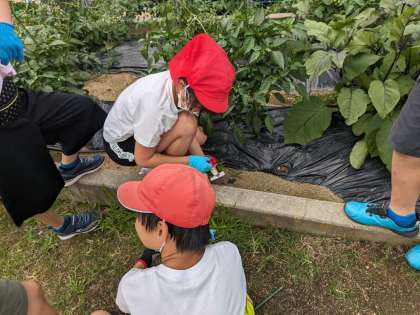 収穫の夏。きゅうり、なす、ピーマン、トマトにおくら、夏野菜がたくさん実りました。収穫した野菜をうれしそうに持ち帰る子どもたちの笑顔がとても素敵でした。
