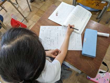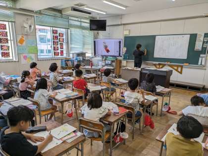 国語の学習です。「サツマイモのそだて方」(説明文)の読み取りをしています。