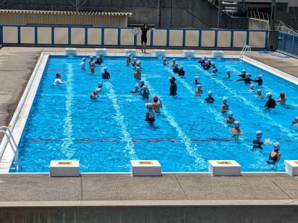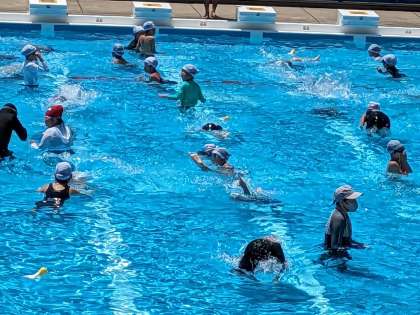 水泳学習です。暑いので、絶好のプール日和です。みんな頑張っています。