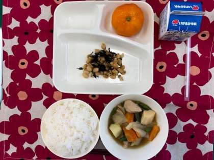 令和5年7月6日(木) 本日の献立 公開日 2023/07/06 更新日 2023/07/06 お知らせ 今日の献立は、・ご飯 ・鶏肉と野菜の煮物 ・ひじき豆 ・冷凍みかん ・牛乳 です。 熱中症は、気温の高いところにいることで、体温が上がりすぎたり、体の水分が足りなくなったりして起こる病気です。熱中症を防ぐためには、水分をしっかりとることと、バランスの良い食事や規則正しい生活で体調を整えておくことが大切です。 「早寝、早起き、朝ご飯」を心掛けましょう。また、給食も残さず食べましょう。 いいね(0)