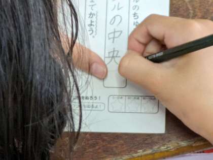 国語のテストに真剣に取り組んでいます。