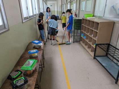 わくわくグループ(縦割りグループ)に分かれて、清掃活動を行いました。日頃手が回らない場所もきれいになりました。