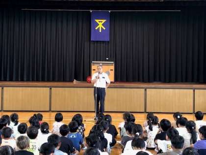 あと、宿題は計画的に、勉強、遊び、やりたいことを決めてください。たとえば、金塚小学校のみなさんであったら、(最初の10日間は、プール開きと図書館開放があるから、毎日行って、体を鍛え、本もしっかり読んで読書感想文を仕上げよう。)(次の10日間はこんなことしよう)(次の10日間はお家の人も休みだから、一緒に楽しもう)というように、1週間か10日間で計画をたてていくのです。