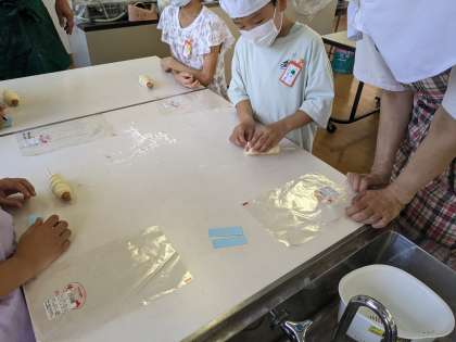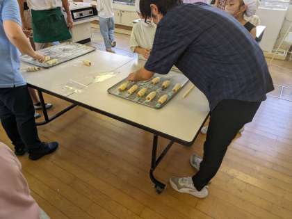 9月1日 学習の様子 3年生 公開日 2023/09/01 更新日 2023/09/01 お知らせ 地域の「中村さんちのパン屋さん」の工場見学させていただいたあと、パンづくり体験をしました。生地をまるく細長くして、ウインナーに巻き付けました。できあがりが楽しみです。 いいね(0)