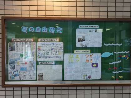 玄関の掲示 公開日 2023/09/05 更新日 2023/09/05 お知らせ 夏休みの自由研究を掲示しています。絵や写真、図や表を使い、調べたことがわかりやすく伝えられるよう、いろいろな工夫がされています。 いいね(0)