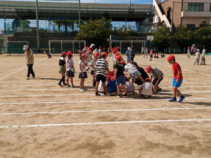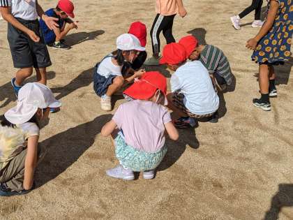 最後に、運動会の草抜きと石拾いをしました。みんなでやるとあっという間にきれいになります。