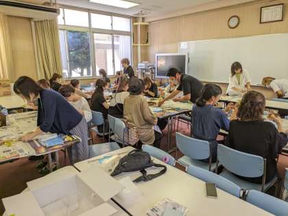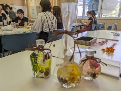 会議室で、フレグランスハーバリウムの体験講座が開催されました。皆さん熱心に取り組まれ、予定より早く作品が完成しました。とても素敵な作品です。阿倍野カーニバルに作品が展示されるそうです。
