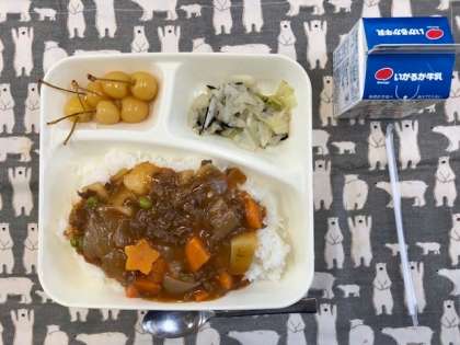 令和5年10月6日(金) 本日の献立 公開日 2023/10/06 更新日 2023/10/06 お知らせ 今日の献立は、・米粉のハヤシライス ・キャベツのひじきドレッシング ・さくらんぼの缶詰 ・牛乳です。 給食でいつも登場しているハヤシライスは、小麦粉で作る、「ブラウンルウ」を使ってとろみをつけています。今日のハヤシライスは、小麦粉で作る「ブラウンルウ」の代わりに、米粉(上新粉)を使っています。小麦アレルギーがある人でもお食べることができます。 いいね(0)