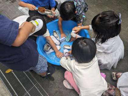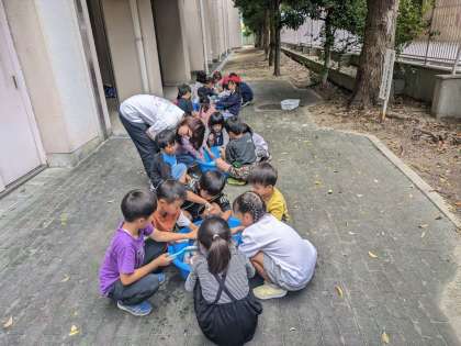 10月20日 学習の様子 1年生 公開日 2023/10/20 更新日 2023/10/20 お知らせ 上靴を洗いました。大きなたらいに洗剤を入れてゴシゴシ洗いました。たらいの水が真っ黒になるぐらい一生懸命洗ったので、上靴がとてもきれいになりました。「お家でも洗っているよ。」という声もたくさん聞こえました。すすいで乾かしました。片付けたあと、楽しかったことや発見したことを発表しました。 いいね(0)