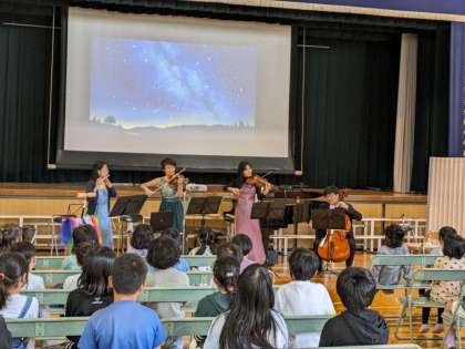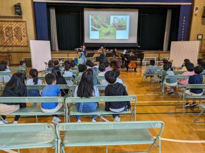 阿倍野区の「音楽体感事業」で「アンサンブル・サビーナ」の皆さんにお越しいただきました。音楽にまつわるお話、映像なども取り入れた楽しい音楽会でした。生の楽器演奏に「音色がきれいだった。」「曲が楽しかった」など、子どもたちもとても楽しかったようです。貴重な体験となりました。ありがとうございました。