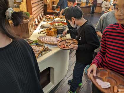 10月25日 修学旅行 公開日 2023/10/25 更新日 2023/10/25 お知らせ モクモクファームのバイキングがお昼ご飯です。種類がたくさんあって、みんなおいしそうで迷います。 いいね(0)