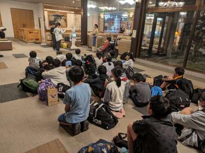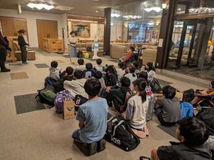 予定より少し遅れましたが、無事宿舎に到着しました。車酔いもなく、全員元気です。開舎式、避難訓練の後、お風呂、おみやげタイム、夕食となります。とても楽しみです。