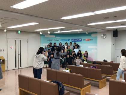 まず初めに、みんなで記念撮影をし、その後、新聞社の中を見学しました。新聞が作り上げられる様子や梱包されるところ、編集部など記事を作る部署も見せていただきました。