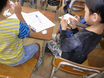 本日、10月19日(月)より「保健強調週間」が始まりました。1学期にも実施しましたが、今日は1年生で「ふき綿検査」を行いました。自分の手の汚れを確認した後、ふき綿(逆性せっけん綿)で特に汚れている部分に注意してふくようにしたのですが、普段から手洗いを心がけているせいか、汚れは少なかったようです。今後も、子どもたちが手洗い・うがいを忘れず、健康な生活を送れることを願っています。