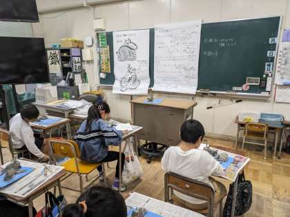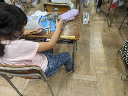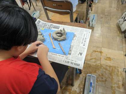 図工の学習です。粘土で龍を作っています。