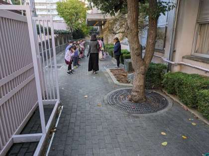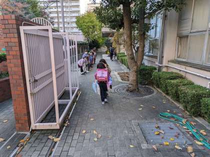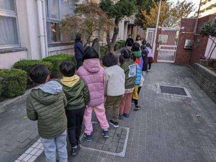 あいさつ運動 2年生。元気いっぱいのあいさつです。