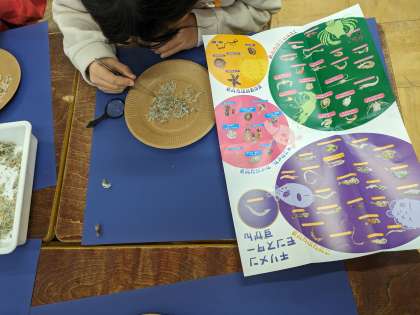 チリメンモンスターの特別授業を行いました。きしわだ自然資料館から講師の先生をお招きし、ちりめんじゃこにまじった様々な海の生き物について教えていただきました。ちりめんじゃこ以外のたくさんの生き物を見つけることができました。楽しく学習できました。