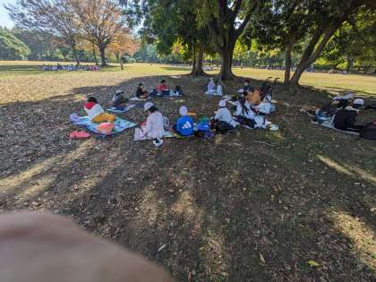 お弁当タイム。グループでおいしくいただきました。みんな笑顔で、食が進みます。
