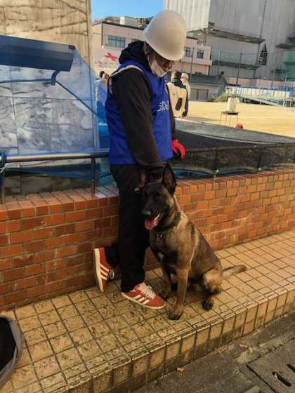 災害救助犬も訓練に駆けつけてくれました。