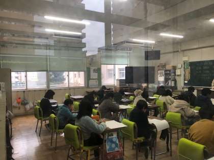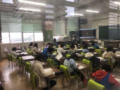 シンと静まり返った校舎の中、子どもたちは集中してテストに取り組んでいます。