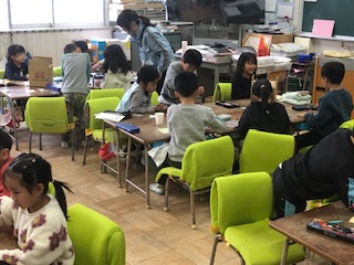 先日、生活科の学習で「おもちゃランド」に招待してもらった2年生に、お礼のお手紙を書いています。