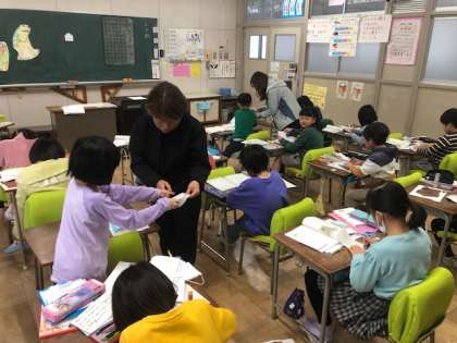 2年生は国語科の学習「お手紙」で、がまがえるくんにお手紙を書いています。