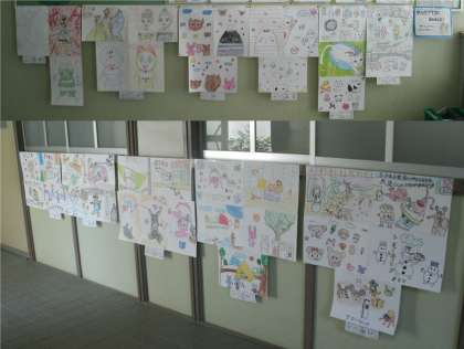 給食掲示板、会議室前廊下に前期まんがクラブの子どもたちの作品が掲示されています。どの作品も力作ぞろいです。学校へお越しの際は、ぜひ、ご覧ください。