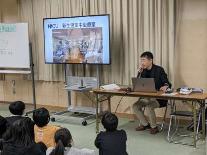 1月26日 学習の様子 5.6年生 公開日 2024/01/26 更新日 2024/01/26 お知らせ 命の授業の3回目です。奈良県立医科大学よりNICU(新生児集中治療室)の釜本智之先生をお招きし「小さな命の現場から」というテーマで授業を行いました。障がいとは、命、生きるとはなど、難しいテーマですが、子どもたちにもわかりましたお話してくださいました。3回の授業を通して、子どもたちはどんなことを感じ取ってくれたのでしょうか?ご家庭での話題にしていただけるとありがたいです。 いいね(0)