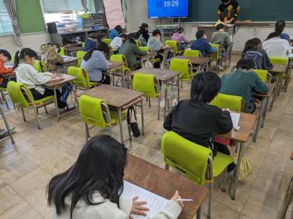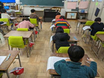 どの教室も、真剣に問題に取り組んでいます。鉛筆の音以外なにも聞こえません。素晴らしい集中力です。