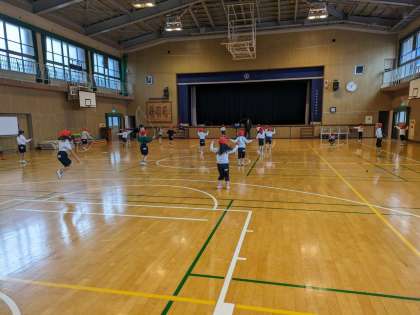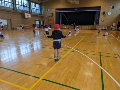 体育館でなわとび学習をしています。みんなとても上手になっています。