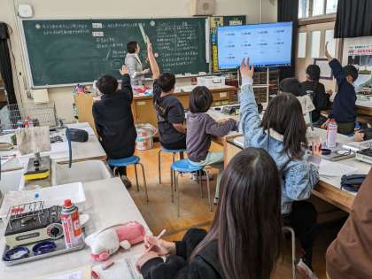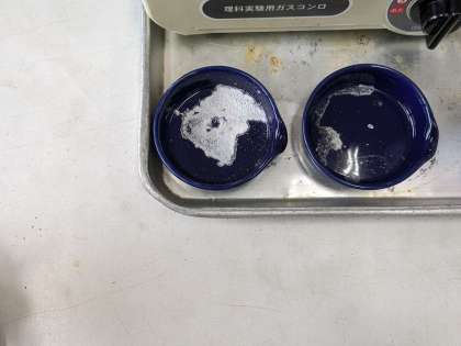 理科室で「もののとけ方」の学習をしています。今日は食塩とミョウバンを水溶液から取り出す実験をしました。