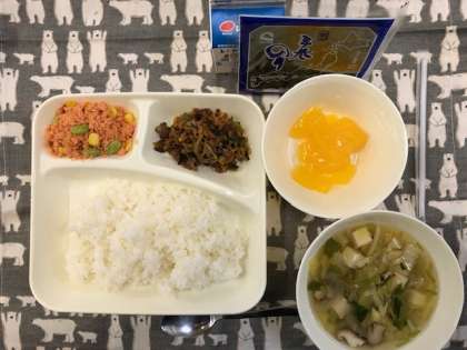 3月6日(水) 本日の献立 公開日 2024/03/06 更新日 2024/03/06 お知らせ 今日の献立は、てまきごはん(牛肉のコチジャンいため、さけのカラフルそぼろ、のり) ・すまし汁 ・ダイスゼリー(みかん) ・牛乳です。 今日は卒業祝い献立です。卒業祝い献立には、6年生の卒業をお祝いする気持ちがこめられています。 いいね(0)