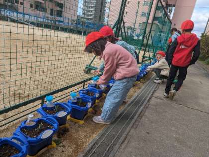 3月7日 1年生 公開日 2024/03/07 更新日 2024/03/07 お知らせ まだまだ寒い日が続いていますが、1年生が育てているチューリップの芽が日毎に育っています。何色の花が咲くのでしょうか? 楽しみですね。 いいね(0)