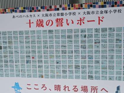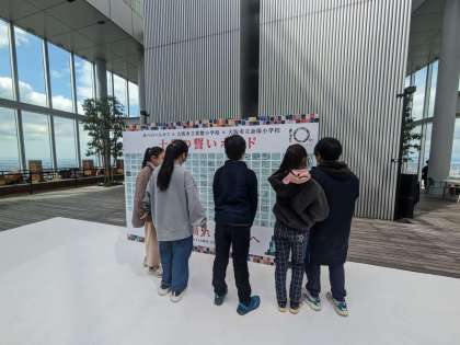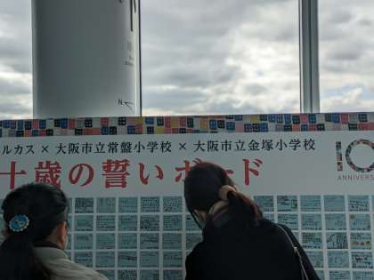 お祝いの会の後は、自分たちの誓いが書かれたボードを見たり、記念写真を撮影したりしました。ボードは3月半ばぐらいまで、60階に展示されているそうです。