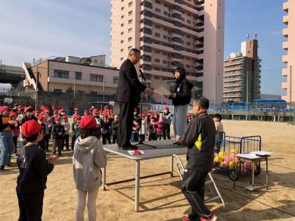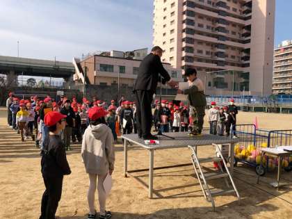 2月に、2年生から6年生で行った日本漢字能力検定で、特に優秀な成績を修めた2人に最優秀賞と優秀賞が授与されました。中学校で学習する漢字にも取り組み、努力が実りました。今日が最後の児童集会でしたので、6年生だけが表彰されました。2年生から5年生は後日、表彰します。