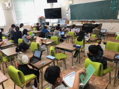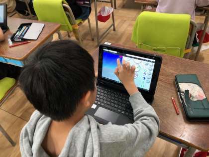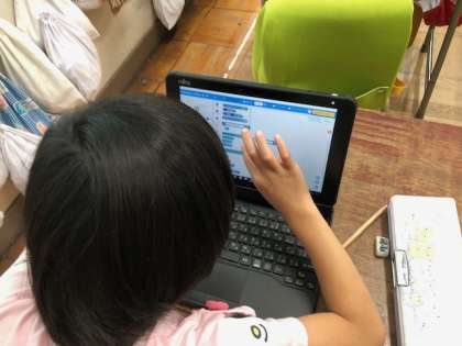 タブレットを使って、お絵かきソフトやプログラミングに取り組んでいます。