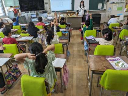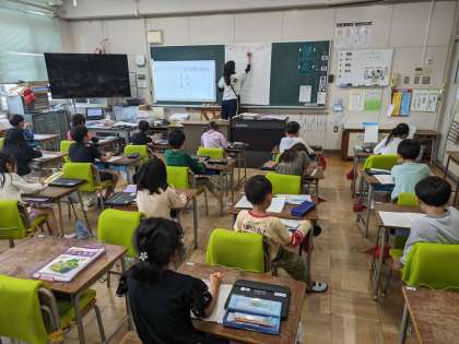 算数。繰り上がりのあるひっ算のしかたについて学習しました。