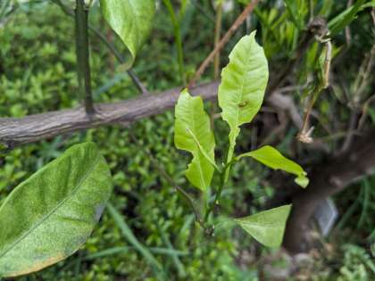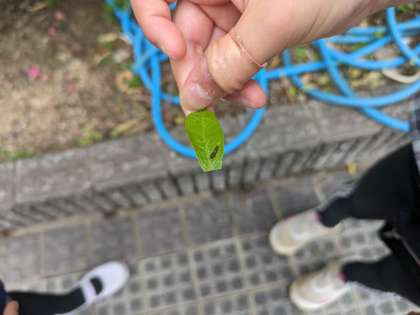 4年生がミカンの木を見ていました。アゲハチョウの幼虫を探して、3年生にプレゼントするそうです。去年の学習を思い出して、役立ててもらおうと考えているようです。優しい先輩ですね。